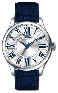 INVICTA Vintage Men 45mm Stainless Steel Steel Silver dial PC21 Quartz , Band Material: Leather, Band Tone: Blue, Band Size [mm]: 22, Band Length [mm]: 190, Buckle Type: Buckle , Crown Type : Push, Case Material : Stainless Steel, Case Tone : Steel, Case Size (mm) : 45, Case Back : Solid, Material of Hands : Metal, Color of Hands : White,Blue, Crystal Type : Flame Fusion, Bezel Material : Stainless Steel, Dial Material : Metal, Dial Color : Silver, Dial Pattern : Textured Pattern .Purchasing these parts and having a non-authorized repair center open your watch voids all manufacturing warranties. Invicta cannot guarantee the quality standards of an altered timepiece, the standard 3-year limited warranty on Invicta timepieces shall be invalid if the timepiece is serviced at any time by an unauthorized repair center. This includes battery replacements, which must be done at an Invicta authorized repair center in order to maintain the eligibility of the warranty. Please follow the link below to learn more about Invicta's warranty.https://cdn.invictawatch.com/www/files/invicta-warranty-2018.pdf