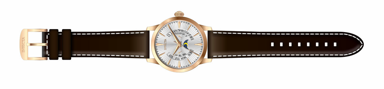 INVICTA Vintage Men 44mm Stainless Steel Rose Gold Silver dial VX3HE Quartz , Band Material: Leather, Band Tone: Brown, Band Size [mm]: 22, Band Length [mm]: 205, Buckle Type: Buckle , Crown Type : Push, Case Material : Stainless Steel, Case Tone : Rose Gold, Case Size (mm) : 44, Case Back : Solid, Material of Hands : Metal, Color of Hands : Rose Gold, Crystal Type : Flame Fusion, Bezel Material : Stainless Steel, Dial Material : Metal, Dial Color : Silver, Dial Pattern : Textured Pattern .Purchasing these parts and having a non-authorized repair center open your watch voids all manufacturing warranties. Invicta cannot guarantee the quality standards of an altered timepiece, the standard 3-year limited warranty on Invicta timepieces shall be invalid if the timepiece is serviced at any time by an unauthorized repair center. This includes battery replacements, which must be done at an Invicta authorized repair center in order to maintain the eligibility of the warranty. Please follow the link below to learn more about Invicta's warranty.https://cdn.invictawatch.com/www/files/invicta-warranty-2018.pdf