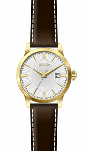 INVICTA Vintage Men 44mm Stainless Steel Gold White dial VJ52 Quartz , Band Material: Leather, Band Tone: Brown, Band Size [mm]: 22, Band Length [mm]: 205, Buckle Type: Buckle , Crown Type : Push, Case Material : Stainless Steel, Case Tone : Gold, Case Size (mm) : 44, Case Back : Solid, Material of Hands : Metal, Color of Hands : Gold, Crystal Type : Flame Fusion, Bezel Material : Stainless Steel, Dial Material : Metal, Dial Color : White, Dial Pattern : Textured Pattern .Purchasing these parts and having a non-authorized repair center open your watch voids all manufacturing warranties. Invicta cannot guarantee the quality standards of an altered timepiece, the standard 3-year limited warranty on Invicta timepieces shall be invalid if the timepiece is serviced at any time by an unauthorized repair center. This includes battery replacements, which must be done at an Invicta authorized repair center in order to maintain the eligibility of the warranty. Please follow the link below to learn more about Invicta's warranty.https://cdn.invictawatch.com/www/files/invicta-warranty-2018.pdf