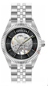 INVICTA Vintage Men 43mm Stainless Steel Steel Black dial JSD-006SY Mechanical , Band Material: Stainless Steel, Band Tone: Steel, Band Size [mm]: 22, Band Length [mm]: 210, Buckle Type: Fold over safety , Crown Type : Push, Case Material : Stainless Steel, Case Tone : Steel, Case Size (mm) : 43, Case Back : Exhibition, Material of Hands : Metal, Color of Hands : Silver, Crystal Type : Flame Fusion, Bezel Material : Stainless Steel, Dial Material : Metal, Dial Color : Black .Purchasing these parts and having a non-authorized repair center open your watch voids all manufacturing warranties. Invicta cannot guarantee the quality standards of an altered timepiece, the standard 3-year limited warranty on Invicta timepieces shall be invalid if the timepiece is serviced at any time by an unauthorized repair center. This includes battery replacements, which must be done at an Invicta authorized repair center in order to maintain the eligibility of the warranty. Please follow the link below to learn more about Invicta's warranty.https://cdn.invictawatch.com/www/files/invicta-warranty-2018.pdf