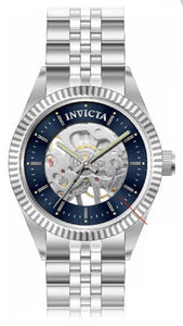 INVICTA Vintage Men 43mm Stainless Steel Steel Blue dial JSD-006SY Mechanical , Band Material: Stainless Steel, Band Tone: Silver, Band Size [mm]: 22, Band Length [mm]: 210, Buckle Type: Fold over safety , Crown Type : Push, Case Material : Stainless Steel, Case Tone : Steel, Case Size (mm) : 43, Case Back : Exhibition, Material of Hands : Metal, Color of Hands : Silver, Crystal Type : Flame Fusion, Bezel Material : Stainless Steel, Dial Material : Metal, Dial Color : Blue .Purchasing these parts and having a non-authorized repair center open your watch voids all manufacturing warranties. Invicta cannot guarantee the quality standards of an altered timepiece, the standard 3-year limited warranty on Invicta timepieces shall be invalid if the timepiece is serviced at any time by an unauthorized repair center. This includes battery replacements, which must be done at an Invicta authorized repair center in order to maintain the eligibility of the warranty. Please follow the link below to learn more about Invicta's warranty.https://cdn.invictawatch.com/www/files/invicta-warranty-2018.pdf