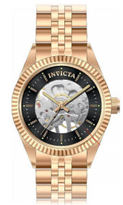 INVICTA Vintage Men 43mm Stainless Steel Rose Gold Black dial JSD-006SY Automatic , Band Material: Stainless Steel, Band Tone: Rose Gold, Band Size [mm]: 22, Band Length [mm]: 210, Buckle Type: Fold over safety , Crown Type : Push, Case Material : Stainless Steel, Case Tone : Rose Gold, Case Size (mm) : 43, Case Back : Exhibition, Material of Hands : Metal, Color of Hands : Rose Gold, Crystal Type : Flame Fusion, Bezel Material : Stainless Steel, Dial Material : Metal, Dial Color : Black .Purchasing these parts and having a non-authorized repair center open your watch voids all manufacturing warranties. Invicta cannot guarantee the quality standards of an altered timepiece, the standard 3-year limited warranty on Invicta timepieces shall be invalid if the timepiece is serviced at any time by an unauthorized repair center. This includes battery replacements, which must be done at an Invicta authorized repair center in order to maintain the eligibility of the warranty. Please follow the link below to learn more about Invicta's warranty.https://cdn.invictawatch.com/www/files/invicta-warranty-2018.pdf