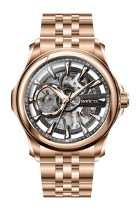 INVICTA Vintage Men 42mm Stainless Steel Rose Gold Black dial JSD-006SY Mechanical , Band Material: Stainless Steel, Band Tone: Rose Gold, Band Size [mm]: 22, Band Length [mm]: 185, Buckle Type: Fold over safety , Crown Type : Push, Case Material : Stainless Steel, Case Tone : Rose Gold, Case Size (mm) : 42, Case Back : Exhibition, Material of Hands : Metal, Color of Hands : White,Rose Gold, Crystal Type : Flame Fusion, Bezel Material : Stainless Steel, Dial Material : Metal, Dial Color : Black, Dial Pattern : None .Purchasing these parts and having a non-authorized repair center open your watch voids all manufacturing warranties. Invicta cannot guarantee the quality standards of an altered timepiece, the standard 3-year limited warranty on Invicta timepieces shall be invalid if the timepiece is serviced at any time by an unauthorized repair center. This includes battery replacements, which must be done at an Invicta authorized repair center in order to maintain the eligibility of the warranty. Please follow the link below to learn more about Invicta's warranty.https://cdn.invictawatch.com/www/files/invicta-warranty-2018.pdf