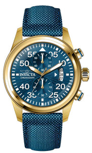 INVICTA Vintage Men 47mm Stainless Steel Gold Blue dial VD51 Quartz , Band Material: Leather, Band Tone: Blue, Band Size [mm]: 24, Band Length [mm]: 210, Buckle Type: Buckle , Crown Type : Push, Case Material : Stainless Steel, Case Tone : Gold, Case Size (mm) : 47, Case Back : Solid, Material of Hands : Metal, Color of Hands : Gold, Crystal Type : Flame Fusion, Bezel Material : Stainless Steel, Dial Material : Metal, Dial Color : Blue, Dial Pattern : Brushed Finish .Purchasing these parts and having a non-authorized repair center open your watch voids all manufacturing warranties. Invicta cannot guarantee the quality standards of an altered timepiece, the standard 3-year limited warranty on Invicta timepieces shall be invalid if the timepiece is serviced at any time by an unauthorized repair center. This includes battery replacements, which must be done at an Invicta authorized repair center in order to maintain the eligibility of the warranty. Please follow the link below to learn more about Invicta's warranty.https://cdn.invictawatch.com/www/files/invicta-warranty-2018.pdf