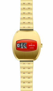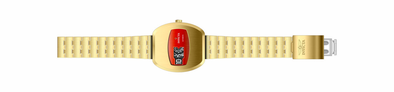 INVICTA Vintage Men 38mm Stainless Steel Gold Red dial NH35A Automatic , Band Material: Stainless Steel, Band Tone: Gold, Band Size [mm]: 18, Band Length [mm]: 200, Buckle Type: Fold over , Crown Type : Push, Case Material : Stainless Steel, Case Tone : Gold, Case Size (mm) : 38, Case Back : Solid, Material of Hands : Plastic, Color of Hands : Black,White, Crystal Type : Flame Fusion, Bezel Material : None, Dial Material : Metal, Dial Color : Red, Dial Pattern : None .Purchasing these parts and having a non-authorized repair center open your watch voids all manufacturing warranties. Invicta cannot guarantee the quality standards of an altered timepiece, the standard 3-year limited warranty on Invicta timepieces shall be invalid if the timepiece is serviced at any time by an unauthorized repair center. This includes battery replacements, which must be done at an Invicta authorized repair center in order to maintain the eligibility of the warranty. Please follow the link below to learn more about Invicta's warranty.https://cdn.invictawatch.com/www/files/invicta-warranty-2018.pdf
