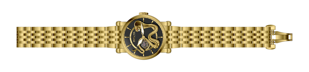 INVICTA Vintage Men 44mm Stainless Steel Gold Black dial NH38A Automatic , Band Material: Stainless Steel, Band Tone: Gold, Band Size [mm]: 22, Band Length [mm]: 215, Buckle Type: Butterfly push button , Crown Type : Push, Case Material : Stainless Steel, Case Tone : Gold, Case Size (mm) : 44, Case Back : Exhibition, Material of Hands : Metal, Color of Hands : Gold,Luminous, Crystal Type : Flame Fusion, Bezel Material : Stainless Steel, Dial Material : Metal, Dial Color : Black, Dial Pattern : None .Purchasing these parts and having a non-authorized repair center open your watch voids all manufacturing warranties. Invicta cannot guarantee the quality standards of an altered timepiece, the standard 3-year limited warranty on Invicta timepieces shall be invalid if the timepiece is serviced at any time by an unauthorized repair center. This includes battery replacements, which must be done at an Invicta authorized repair center in order to maintain the eligibility of the warranty. Please follow the link below to learn more about Invicta's warranty.https://cdn.invictawatch.com/www/files/invicta-warranty-2018.pdf