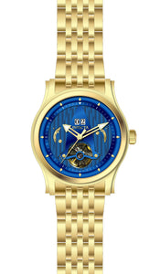 INVICTA Vintage Men 43mm Stainless Steel Gold Blue dial TY2525 Automatic , Band Material: Stainless Steel, Band Tone: Gold, Band Size [mm]: 22, Band Length [mm]: 215, Buckle Type: Butterfly push button , Crown Type : Push, Case Material : Stainless Steel, Case Tone : Gold, Case Size (mm) : 43, Case Back : Exhibition, Material of Hands : Metal, Color of Hands : Gold,Luminous, Crystal Type : Flame Fusion, Bezel Material : Stainless Steel, Dial Material : Metal, Dial Color : Blue, Dial Pattern : Double Layered Design .Purchasing these parts and having a non-authorized repair center open your watch voids all manufacturing warranties. Invicta cannot guarantee the quality standards of an altered timepiece, the standard 3-year limited warranty on Invicta timepieces shall be invalid if the timepiece is serviced at any time by an unauthorized repair center. This includes battery replacements, which must be done at an Invicta authorized repair center in order to maintain the eligibility of the warranty. Please follow the link below to learn more about Invicta's warranty.https://cdn.invictawatch.com/www/files/invicta-warranty-2018.pdf