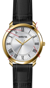 Band Material: Leather, Band Tone: Black, Band Width: 20MM, Band Length: 200MM, Crown Type: Push, Case Material: Stainless Steel, Case Tone: Gold, Case Size [mm]: 41, Case Back: Solid, Material of Hands: Metal, Color of Hands: Gold, Crystal Type: Flame Fusion, Bezel Material: Stainless Steel, Dial Material: Metal, Dial Color: Silver, Dial Pattern: Sun-ray Finish .Purchasing these parts and having a non-authorized repair center open your watch voids all manufacturing warranties. Invicta cannot guarantee the quality standards of an altered timepiece, the standard 3-year limited warranty on Invicta timepieces shall be invalid if the timepiece is serviced at any time by an unauthorized repair center. This includes battery replacements, which must be done at an Invicta authorized repair center in order to maintain the eligibility of the warranty. Please follow the link below to learn more about Invicta's warranty.https://cdn.invictawatch.com/www/files/invicta-warranty-2018.pdf